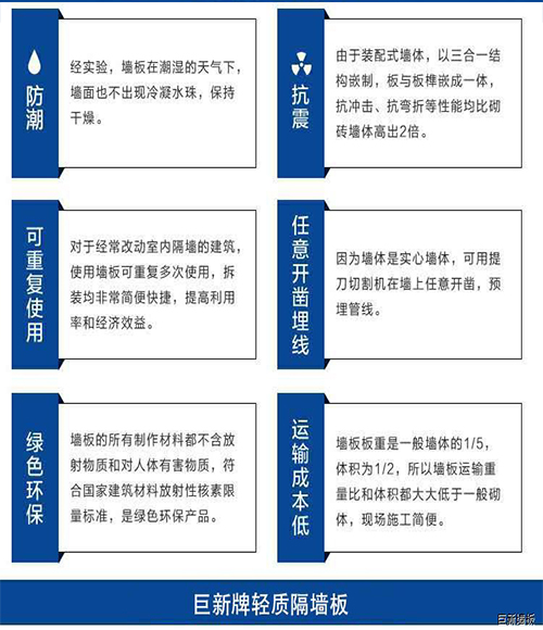 巨新輕質(zhì)墻板由硅酸鈣板、水泥、聚苯顆粒、多種輕集料組成所以保溫。