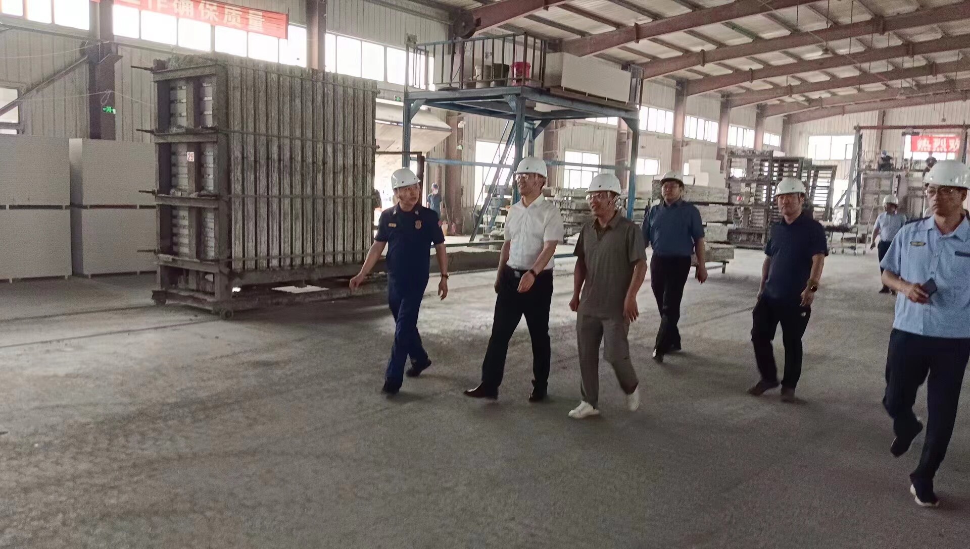 2023年6月21日上午,龍鳳區(qū)區(qū)委書(shū)記曾宇凡一行蒞臨龍鳳區(qū)光明產(chǎn)業(yè)園區(qū)大慶市格新建材有限公司指導(dǎo)工作。龍鳳區(qū)光明產(chǎn)業(yè)園區(qū)主任與科員、龍鳳區(qū)安全局主任與科員陪同走訪。